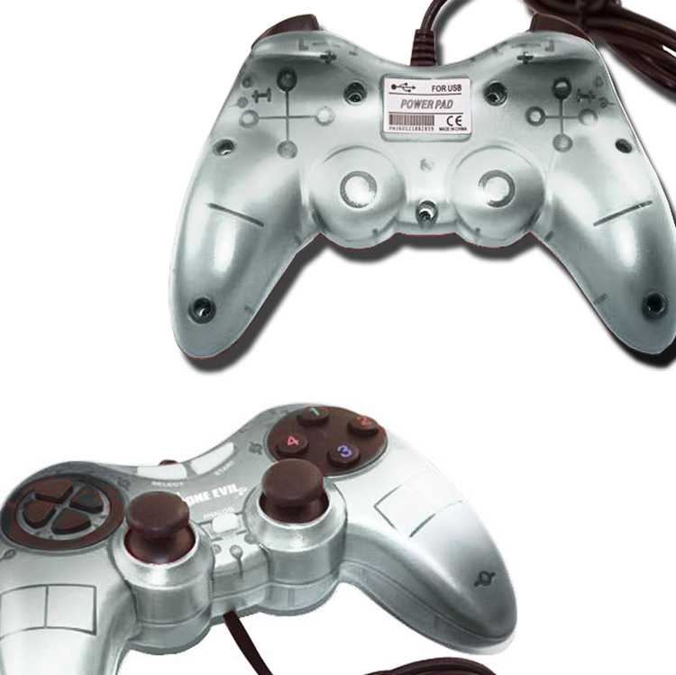 Mando para juegos con 2 joysticks analógicos y función de vibración. Diseño ergonómico en color plata.