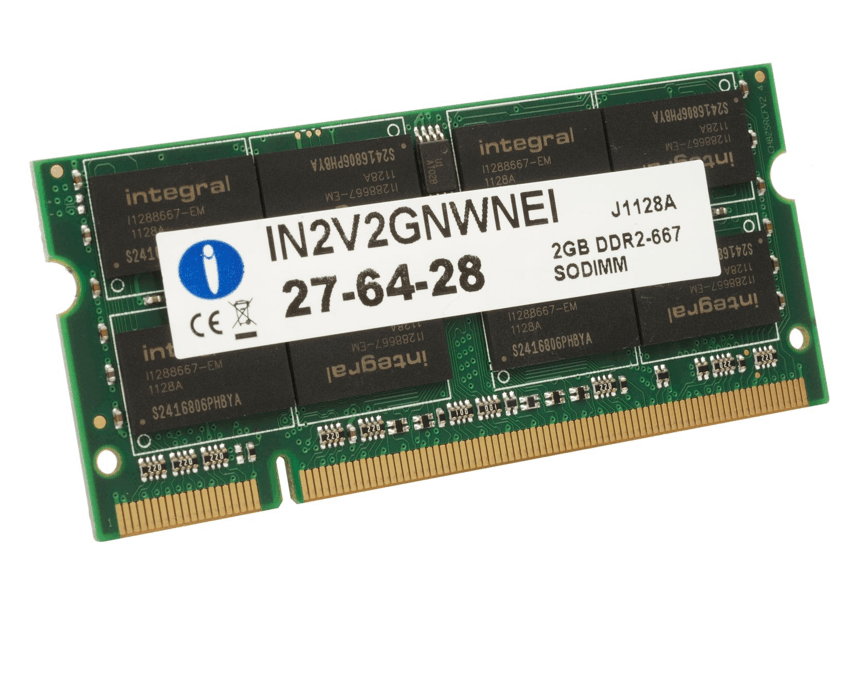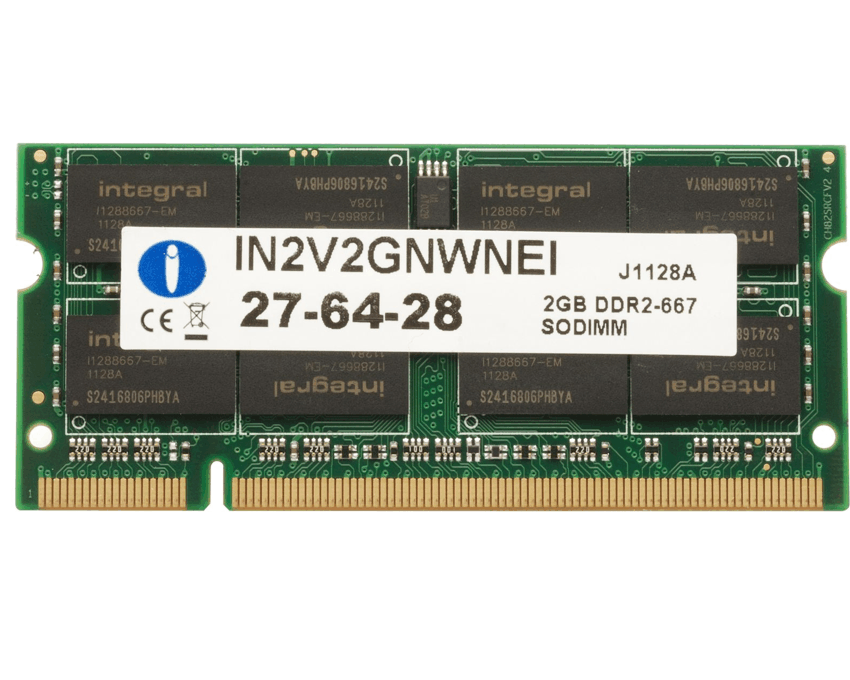 Integral 2GB, DDR2, 667MHz, CL5, SODIMM, 2048 MB, DDR2, 667 MHz, Ordenador portátil, 200-pin SO-DIMM, SO-DIMM Integral 2GB, DDR2, 667MHz, CL5, SODIMM. Memoria: 2048 MB, DDR2, 667 MHz, Ordenador portátil, 200-pin SO-DIMM, SO-DIMM