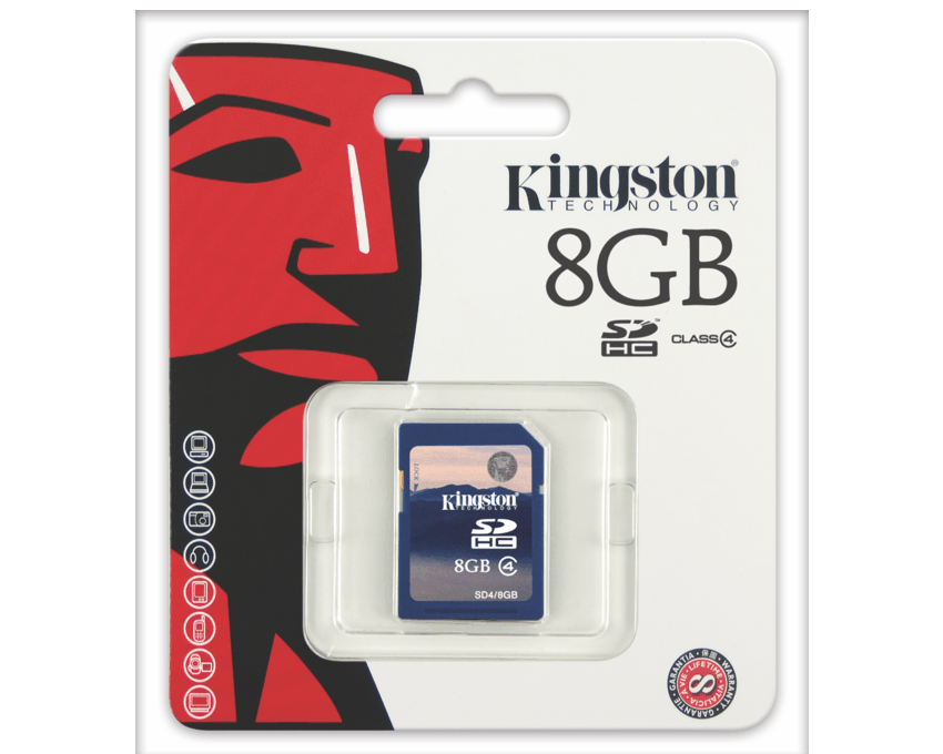 Tarjeta de memoria flash - 8GB - Class4 - SDHC Las tarjetas de memoria SD de alta capacidad (SDHC) de Kingston suponen una nueva clase de memoria SD, ya que han sido diseñadas específicamente para dar respuesta a las necesidades de almacenamiento de cámaras digitales de fotografia y vídeo y demás dispositivos de grabación digital de imágenes de alta resolución.