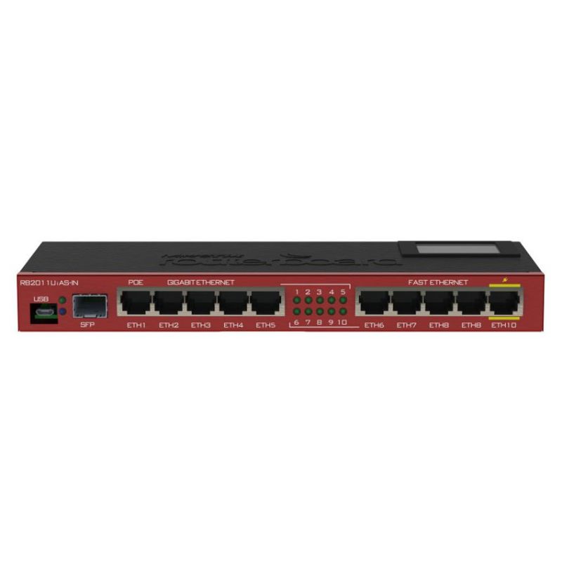 Descripción Mikrotik RB2011UIAS-IN. Puertos tipo básico de conmutación RJ-45 Ethernet: Gigabit Ethernet (10/100/1000), Cantidad de puertos básicos de conmutación RJ-45 Ethernet: 10, Conector eléctrico: Toma de entrada de CC. Energía sobre Ethernet (PoE)