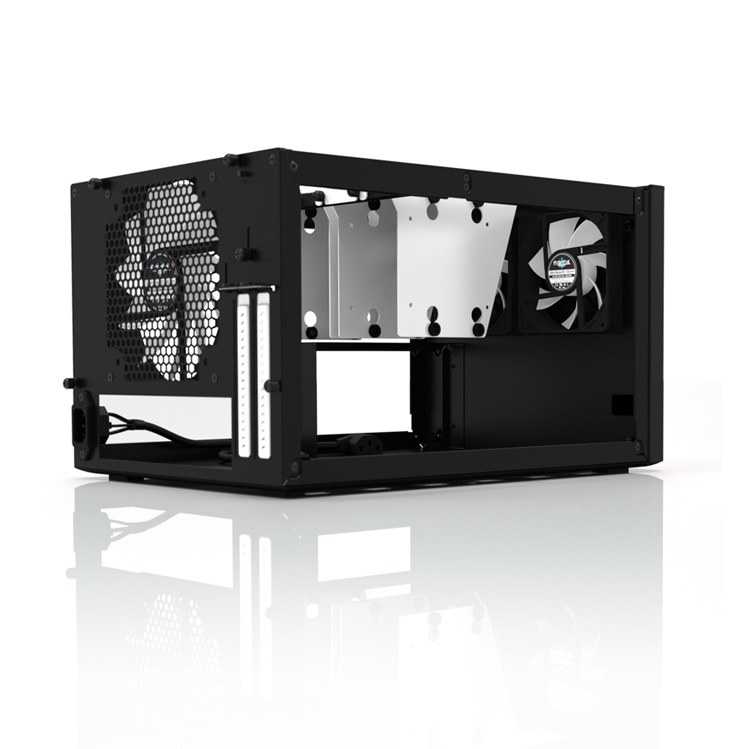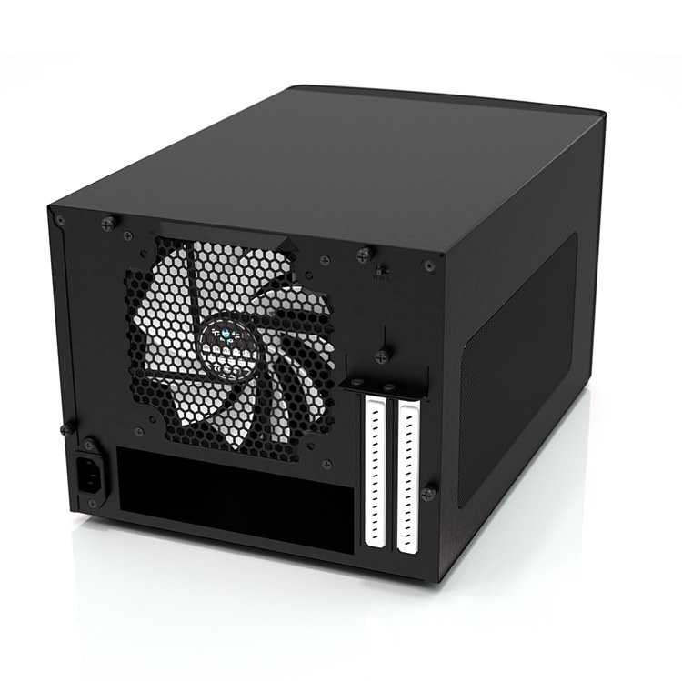 Cubo mini ITX con frontal de aluminio y capacidad para instalar hasta 6 discos duros.