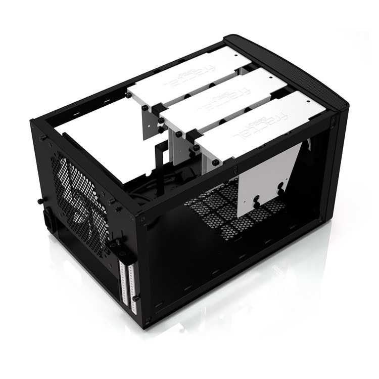 Consta de una estructura para instalar hasta seis unidades de discos duros con la posibilidad de extraerla para permitir la instalación de gráficas de gran tamaño.