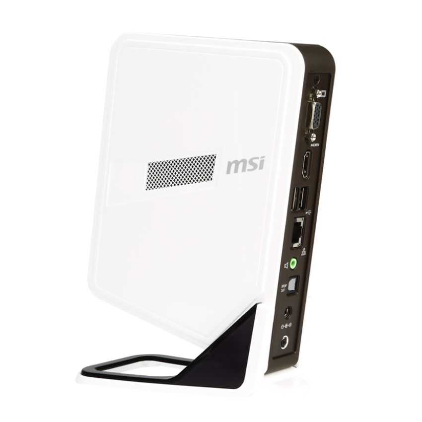 Descripción MSI DC111-027XEU, Wind Box. Frecuencia del procesador: 1,8 GHz, Familia de procesador: Intel Celeron, Modelo del procesador: 1037U. Memoria interna: 4 GB, Tipo de memoria interna: DDR3-SDRAM, Memoria interna máxima: 4 GB. Capacidad total de almacenaje: 500 GB, Unidad de almacenamiento: HDD, Capacidad de disco duro: 500 GB. Modelo de gráficos en tarjeta: Intel HD Graphics. Ethernet LAN, velocidad de transferencia de datos: 10, 100, 1000 Mbit/s, Tecnología de cableado: 10/100/1000Base-T(X), Wi-Fi estándars: 802.11b, 802.11g, 802.11n