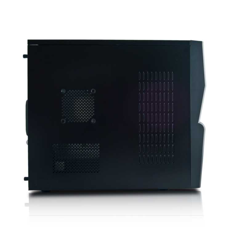 ini torre para placas micro ATX compatible con fuentes ATX. Frontal metal mesh para un excelente flujo de aire y diseño del frontal con líneas rojas.