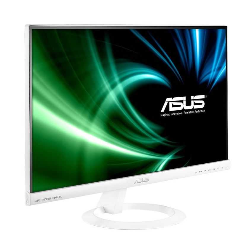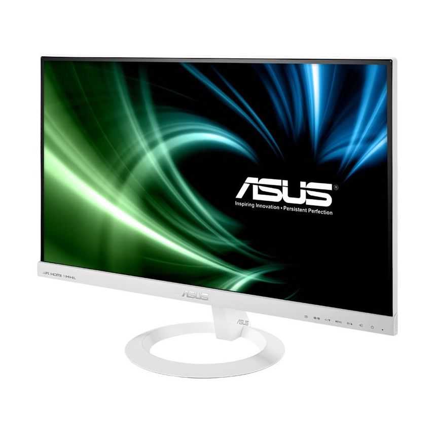 Descripción ASUS VX239H-W. Diagonal de la pantalla: 58,42 cm (23"), Tiempo de respuesta: 5 ms, Brillo de pantalla: 250 cd / m². Auriculares: 3.5 mm. Potencia estimada RMS: 2W. Color del producto: Color blanco. Ranura para cable de seguridad: Kensington, Ángulo de inclinación: -5 - 20°