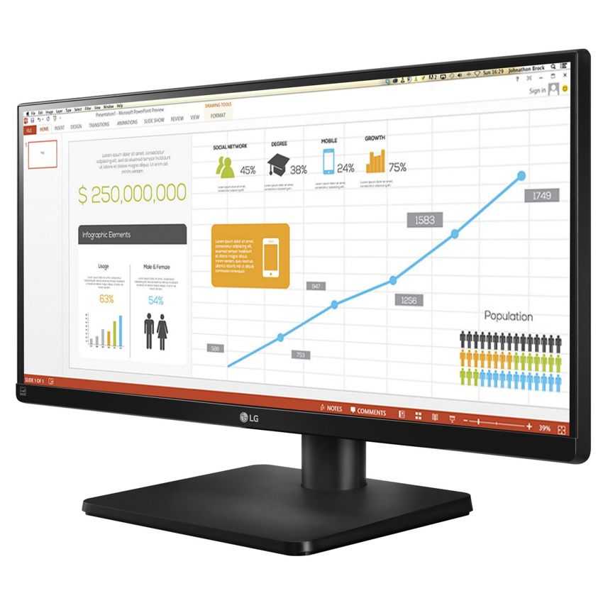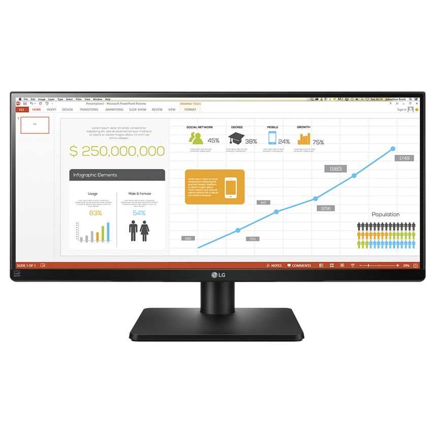 Descripción LG 29UB67-B. Diagonal de la pantalla: 73,66 cm (29"), Tiempo de respuesta: 5 ms, Brillo de pantalla: 300 cd / m². Auriculares: 3,5 mm. Potencia estimada RMS: 14W. Color del producto: Negro. Tiempo medio entre fallos: 50000h