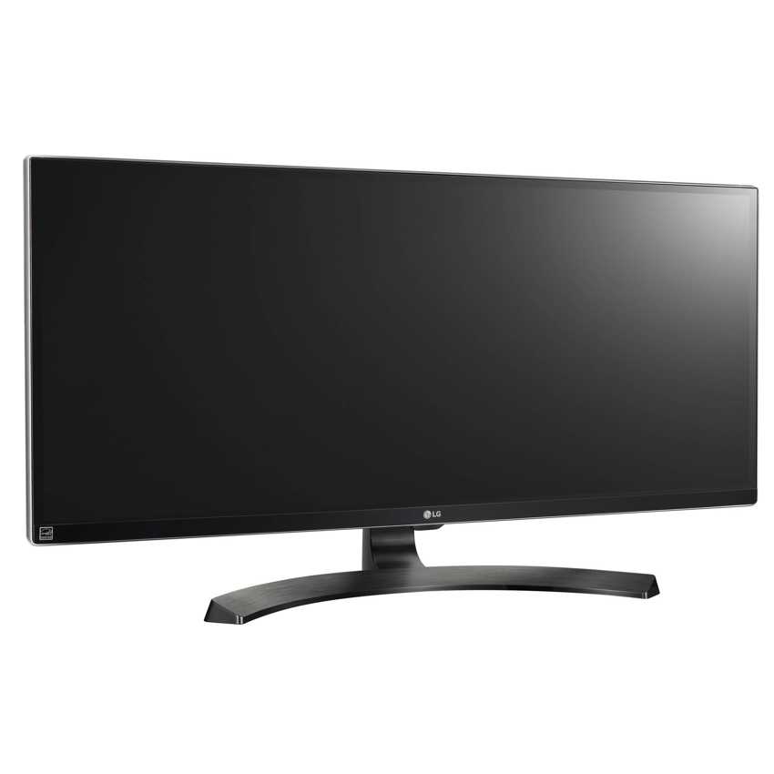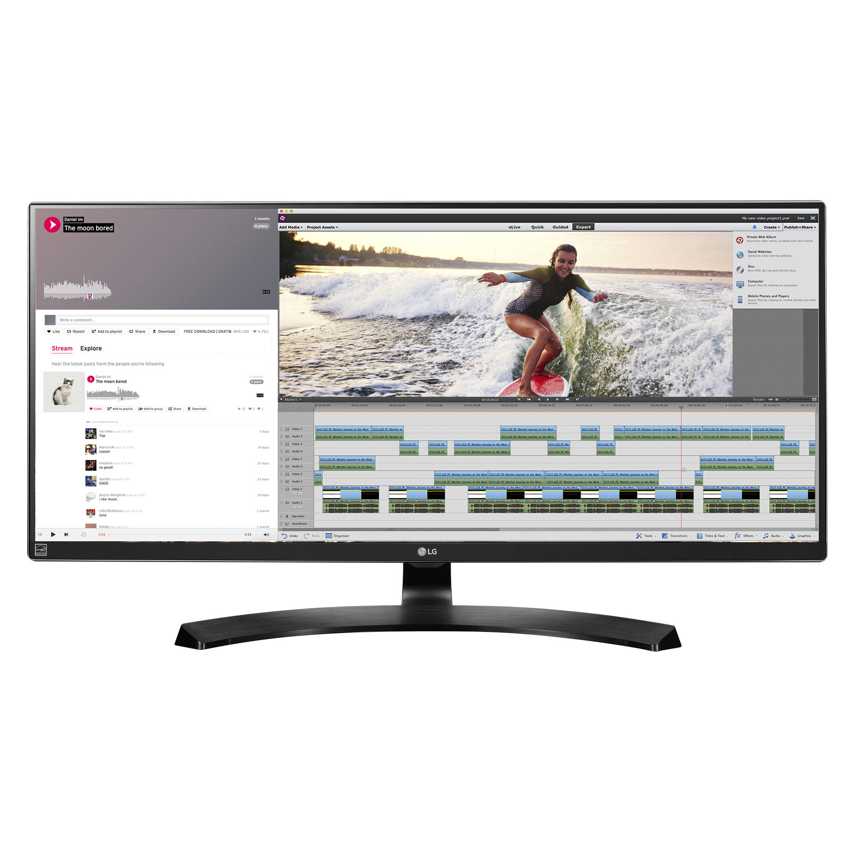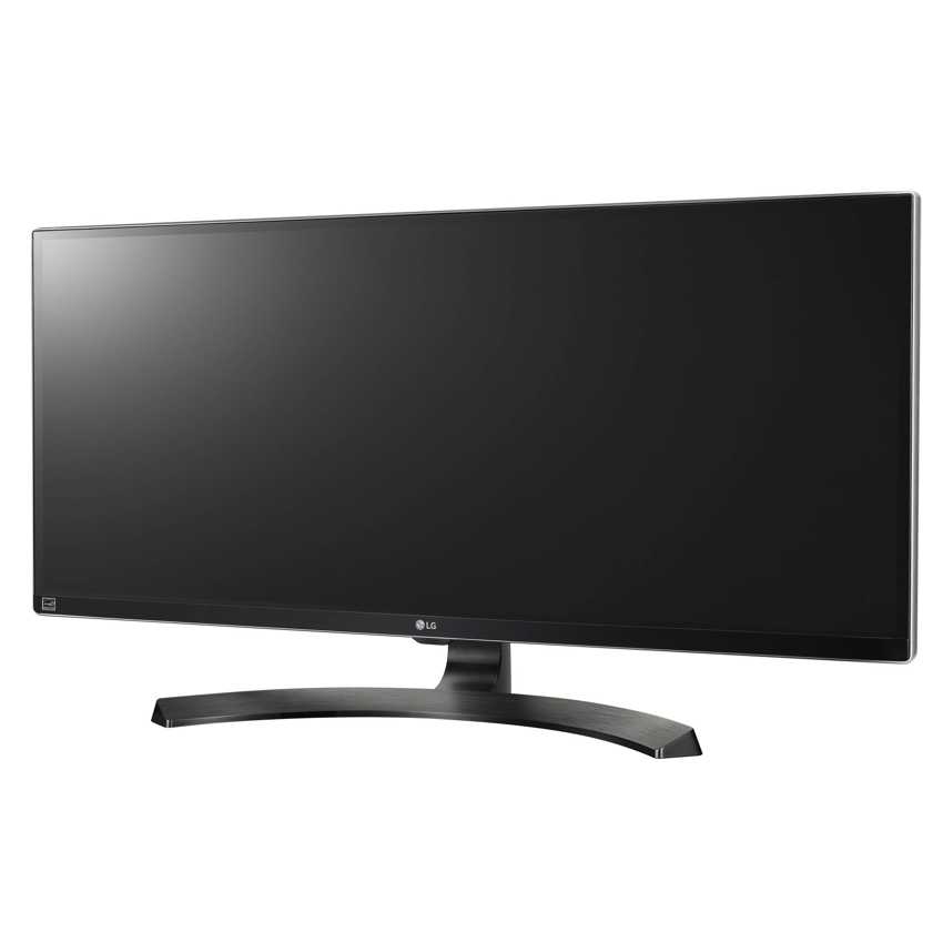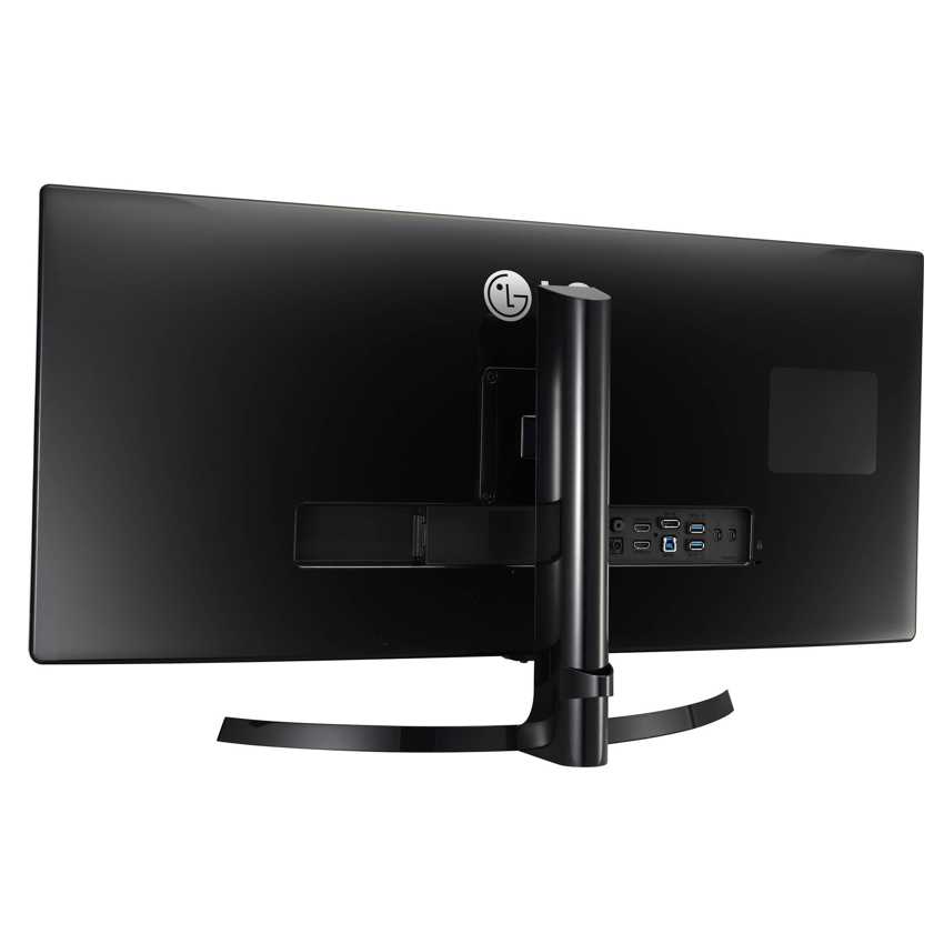 Descripción LG 34UM88. Diagonal de la pantalla: 86,4 cm (34") Brillo de pantalla: 300 cd / m² Resolución de la pantalla: 3440 x 1440 Pixeles. Potencia estimada RMS: 7 W. Color del producto: Negro Color de pies: Negro Ranura para cable de seguridad: Kensington Ángulo de inclinación: 5 - 20° Ajuste de altura: 12 cm. Voltaje de entrada AC: 90-240 V Frecuencia de entrada AC: 47/63 Hz Consumo de energía anual: 79 kWh