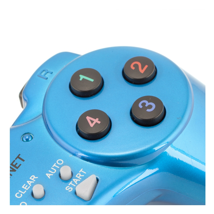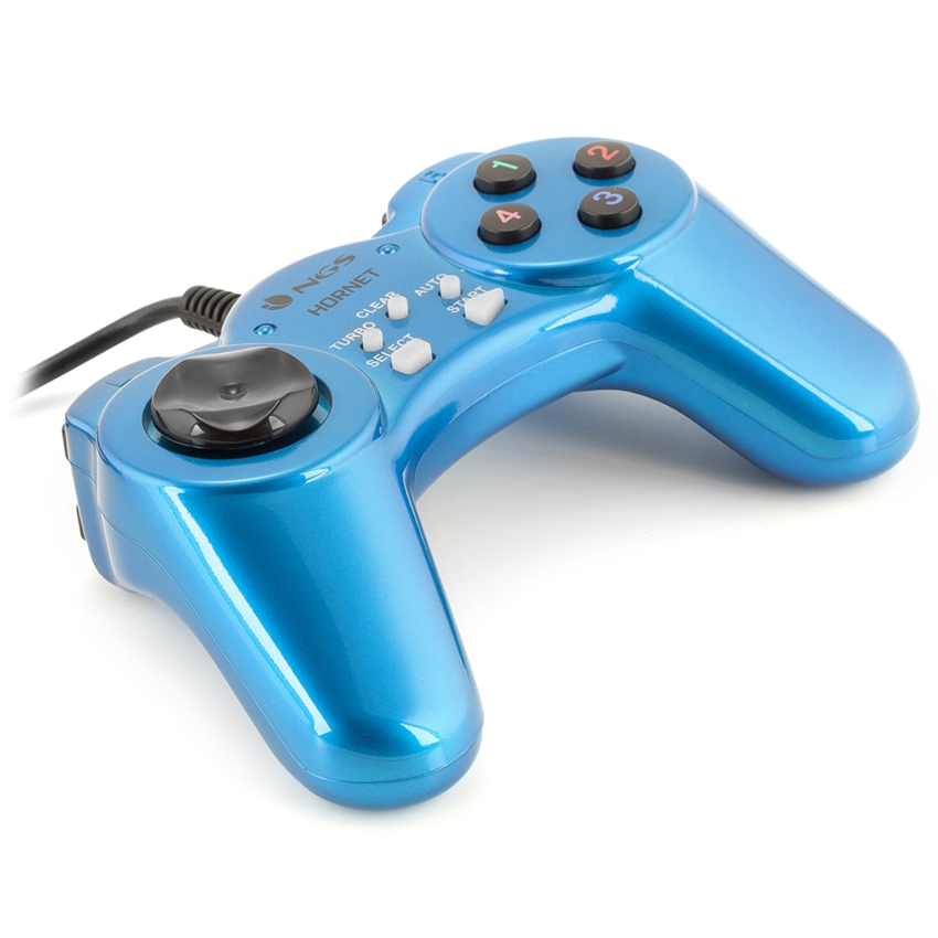 Posee cruceta digital de ocho direcciones y diez botones de disparo.