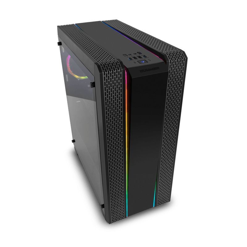 - Panel lateral de cristal templado - Tiras de LED RGB Rainbow (superior y frontal) - Ventilador de 120 mm RGB Rainbow pre-instalado - Espacio para instalar hasta 6 ventiladores