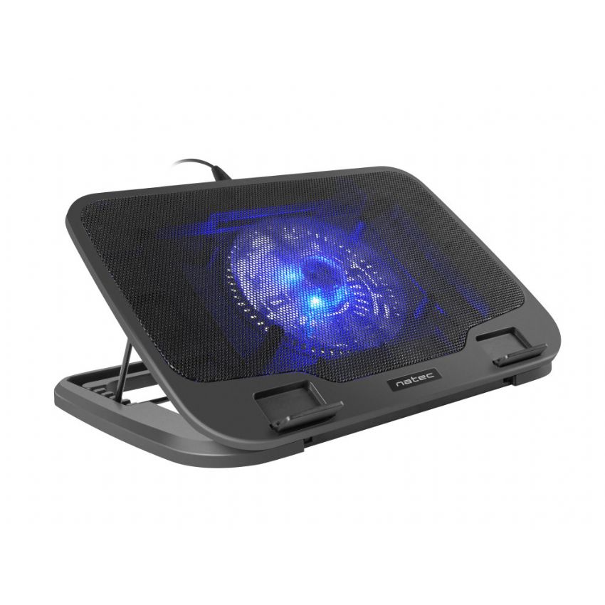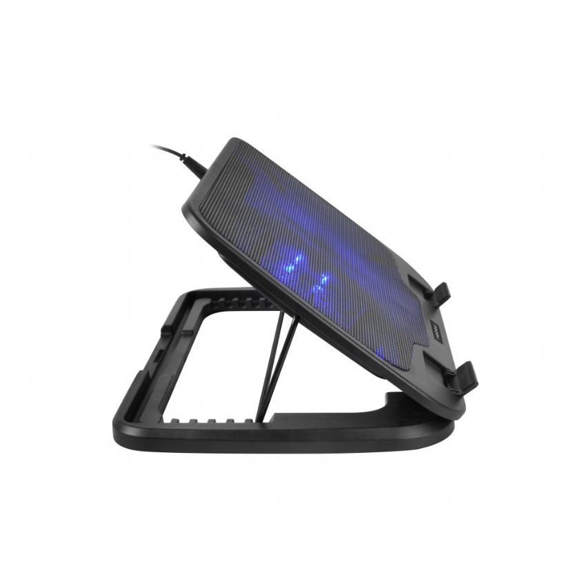 Especificaciones Control de energía USB con suministro de corriente Sí Peso y dimensiones Altura 28 mm Ancho 380 mm Peso 813 g Profundidad 260 mm Puertos e Interfaces Interfaz de host USB Diseño Color del producto Negro Iluminación Sí Iluminación de color Azul Material ABS, Metal Desempeño Control de la velocidad del ventilador Si Desempeño de ventilador 32 cfm Diámetro de ventilador 15,5 cm Nivel de ruido 20 dB Número de ventiladores incluidos 1 pieza(s) Tamaño máximo de pantalla 43,2 cm (17") Velocidad de rotación (máx.) 715 RPM