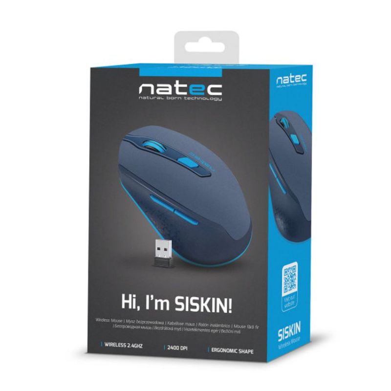 Descripción Natec Genesis SISKIN. Factor de forma: mano derecha. Tecnología de detección de movimientos: Óptico, Interfaz del dispositivo: RF inalámbrico, Resolución de movimiento: 2400 DPI, Tipo de botones: Botones presionados, Cantidad de botones: 6, Tipo de desplazamiento: Rueda. Fuente de energía: Baterías. Color del producto: Azul