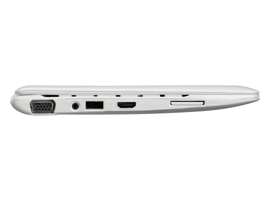 Asus Eee PC X101CH-WHI034S, 1600 MHz, N2600, Intel Atom, 1 MB, Intel NM10, 1024 MB Asus Eee PC X101CH-WHI034S. Procesador: 1600 MHz, N2600, Intel Atom, 1 MB, Intel NM10. Memoria: 1024 MB, 1x SO-DIMM, DDR3-SDRAM, 2 GB, 1 x 1024 MB. Accionamiento de disco: 320 GB, 320 GB, HDD. Medios de almacenaje: MMC, SD, SDHC. Exhibición: 256.5 mm (10.1 "), 1024 x 600 Pixeles. Cámara fotográfica: 0.3 MP. Red: 10, 100 Mbit/s, IEEE 802.11 b/g/n, Fast Ethernet, 10/100Base-T(X). Vídeo: Intel. Audio: HD. Sistema operativo/software: Windows 7 Starter. Color: Blanco. Contro de energía: Litio-Ion, 3 piezas, 100 - 240 V. Peso y dimensiones: 262 mm, 180 mm, 22 mm