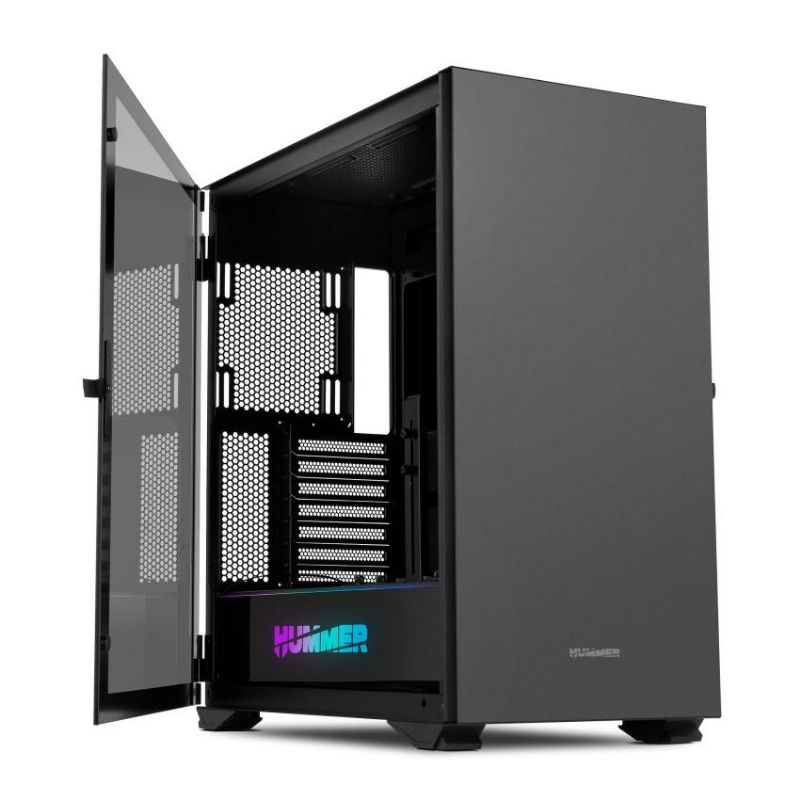 Descripción Hummer Nexus black edition HIGH PERFORMANCE DELUXE CHASSIS Hummer NEXUS Nox Hummer Nexus ha sido diseñada para un alto rendimiento. Esta es una caja para PC con cuatro ventiladores preinstalados que permite montar configuraciones muy potentes y que ofrece también capacidades de enfriamiento superiores gracias a un generoso espacio interior que permite montar gráficas de hasta 400 mm. Diseño minimalista Nox Hummer Nexus, disponible en dos colores, negro y blanco, es compatible con las placas base E-ATX, ATX, Micro ATX e ITX y posibilita, gracias a su gran capacidad, instalar poderosas configuraciones. Con un diseño minimalista en su panel frontal, ha sido diseñada con un panel lateral de cristal templado de alta calidad de 4 mm. Con apertura de bisagra, este panel permite, asimismo, el acceso al chasis. Espacio infinito El amplio espacio de Nox Hummer Nexus nos permite instalar sistemas de refrigeración líquida de hasta 360 mm en el frontal y en la parte superior, entre otras muchas posibilidades, pudiendo albergar sistemas doble y hasta triple. Además, Nox Hummer Nexus posibilita montar una tarjeta gráfica de hasta 400 mm, así como un cooler para CPU de 180 mm, lo que permite instalar prácticamente cualquier cooler de gama alta del mercado. Por otro lado, esta caja para PC contempla dos bahías para HDD o SSD de 3.5" y otras dos de 2.5". Fácil accesibilidad Esta torre para PC de Nox incorpora todos los puertos imprescindibles en su parte superior. Encontramos un USB 3.0, de alta velocidad, y un USB 2.0, así como las conexiones de audio HD, el control LED ARGB y un puerto de Tipo C. Ventilación excelente Con cuatro potentes ventiladores preinstalados, todos ellos de 120 mm, situados tres en su frontal y uno en la parte trasera, Nox Hummer Nexus garantiza una ventilación superior. En el espectacular interior de este chasis también se pueden instalar de forma adicional tres ventiladores extra en su zona superior, bien de 120 mm o de 140 mm, y dos en su fondo. Para asegurar en todo momento la excelente temperatura de los componentes del equipo, Nox Hummer Nexus cuenta con un compartimiento inferior donde ubicar la PSU y los discos duros, de manera que evita que el calor de la fuente de alimentación y de estos otros componentes se transmita al resto. Este módulo, situado en la parte inferior, incorpora una espectacular iluminación ARGB que hace que el resto de componentes luzcan todavía más impresionantes.