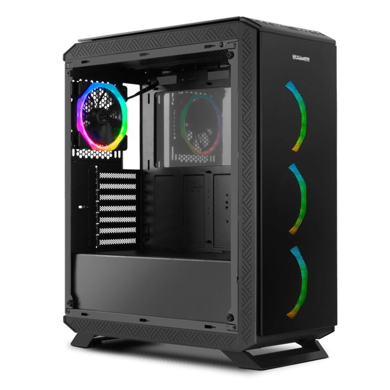 - Paneles frontal, laterales y superior de cristal templado - 4 ventiladores de 120 mm RGB Rainbow pre-instalados - Espacio para instalar hasta 6 ventiladores - Compartimento aislado para PSU y discos duros - Posibilidad de sincronización RGB con la placa base