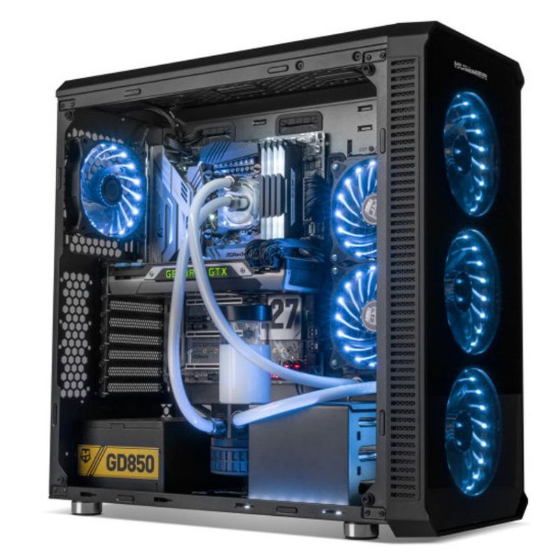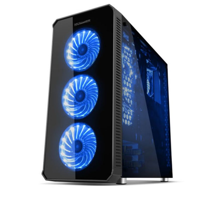 Diseño y rendimiento Hummer TGX es un chasis de líneas limpias con una potente iluminación LED RGB en su panel frontal, así como en su panel trasero. Sus laterales de cristal templado, envuelven el chasis y dejan ver un amplio espacio donde albergar componentes de alto rendimiento para una configuración superior. Hummer TGX permite instalar sistemas de refrigeración líquida doble y hasta triple en su interior, logrando así un enfriamiento superior que permita potenciar al máximo el rendimiento de todos los componentes.
