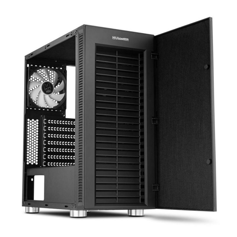Hummer Void es una semitorre con un diseño elegante y minimalista, propio de la línea Hummer, dotada de una gran flexibilidad a la hora de albergar configuraciones de alto rendimiento. Cuenta con paneles laterales, frontal y superior amortiguadores de ruido para que puedas disfrutar de las configuraciones más potentes de forma silenciosa.