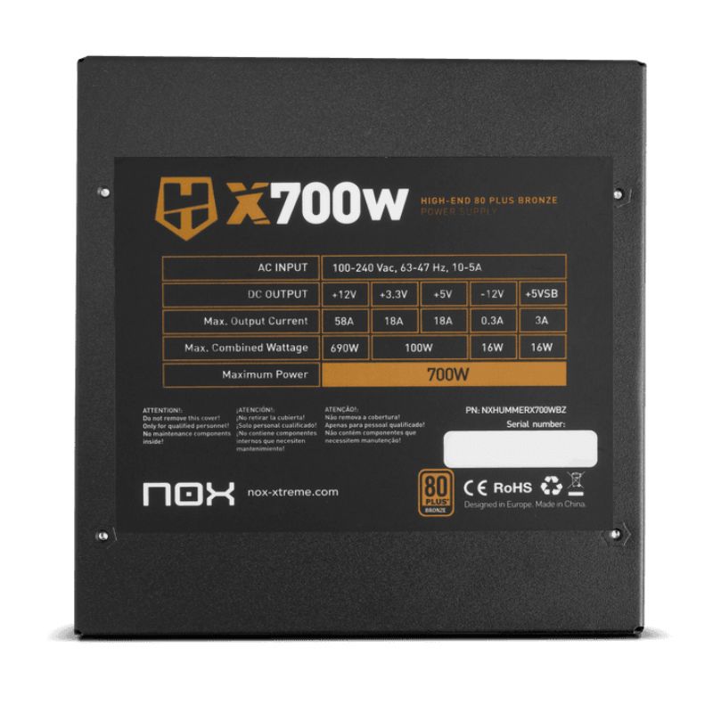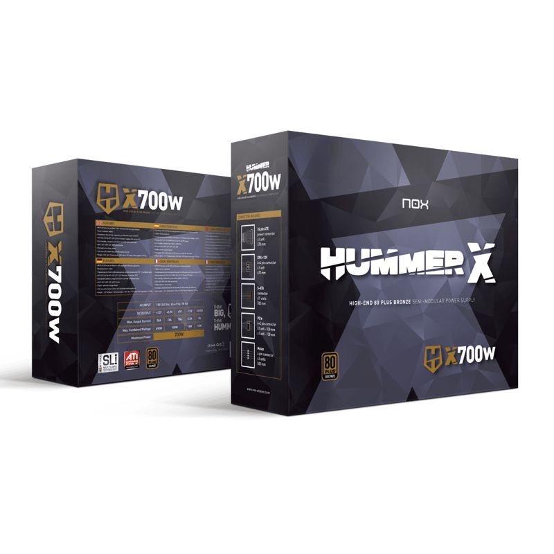 Descripción HUMMER X 600W - BRONZE EDITION Los acabados premium de la Hummer X 700W Bronze dan una pista sobre la calidad de los componentes que podrás encontrar en su interior: Cables planos extralargos para una fuente semimodular que cuenta con el certificado 80+Bronze y que garantiza la utilización del 85% de la energía cuando el PC está a su máximo rendimiento.