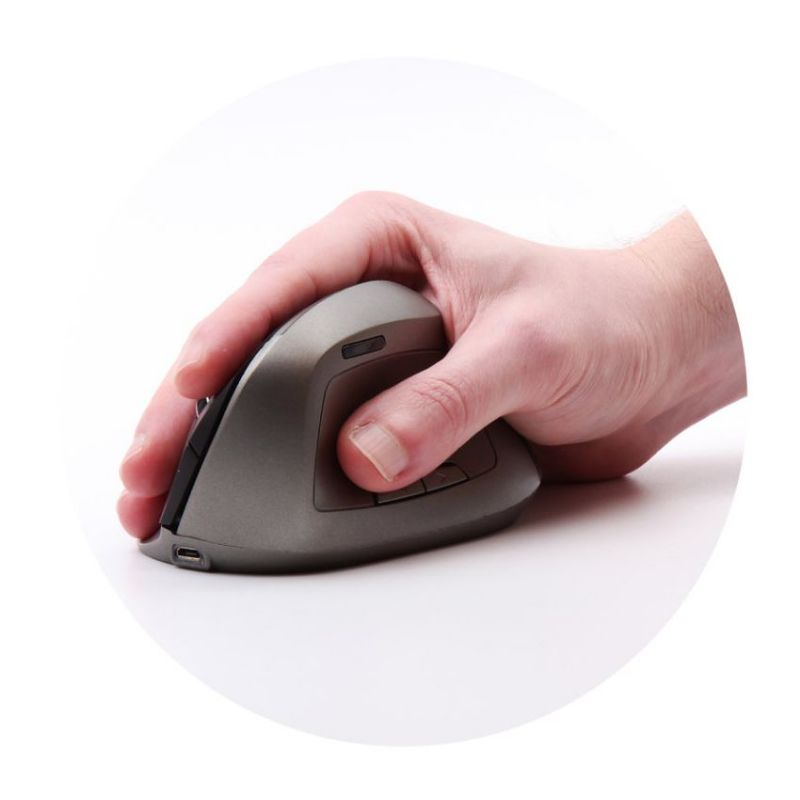 Descripción Los ratones llamados “verticales” le permiten eliminar la torsión del antebrazo y de esta manera colocar su brazo en una posición más natural. En este caso, el desplazamiento del ratón es realizado por la espalda y el brazo, lo que permite reducir la presión en la muñeca.