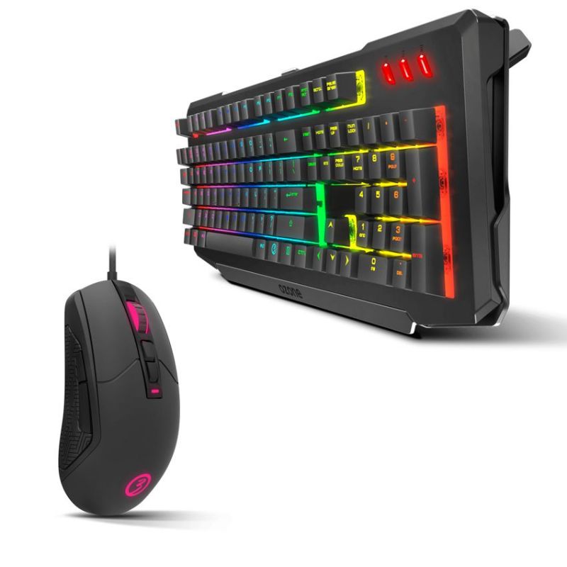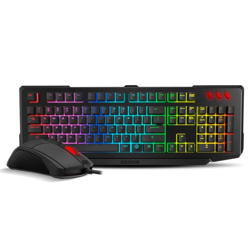 DISEÑO E ILUMINACIÓN Ambos periféricos han sido concebidos para darte la mayor comodidad durante largas sesiones gaming. Además, el teclado cuenta con tecnología RGB que podrás personalizar directamente y elegir entre numerosos efectos de iluminación para disfrutar de cada partida, tanto de día como de noche, sin perder de vista tus armas de combate.