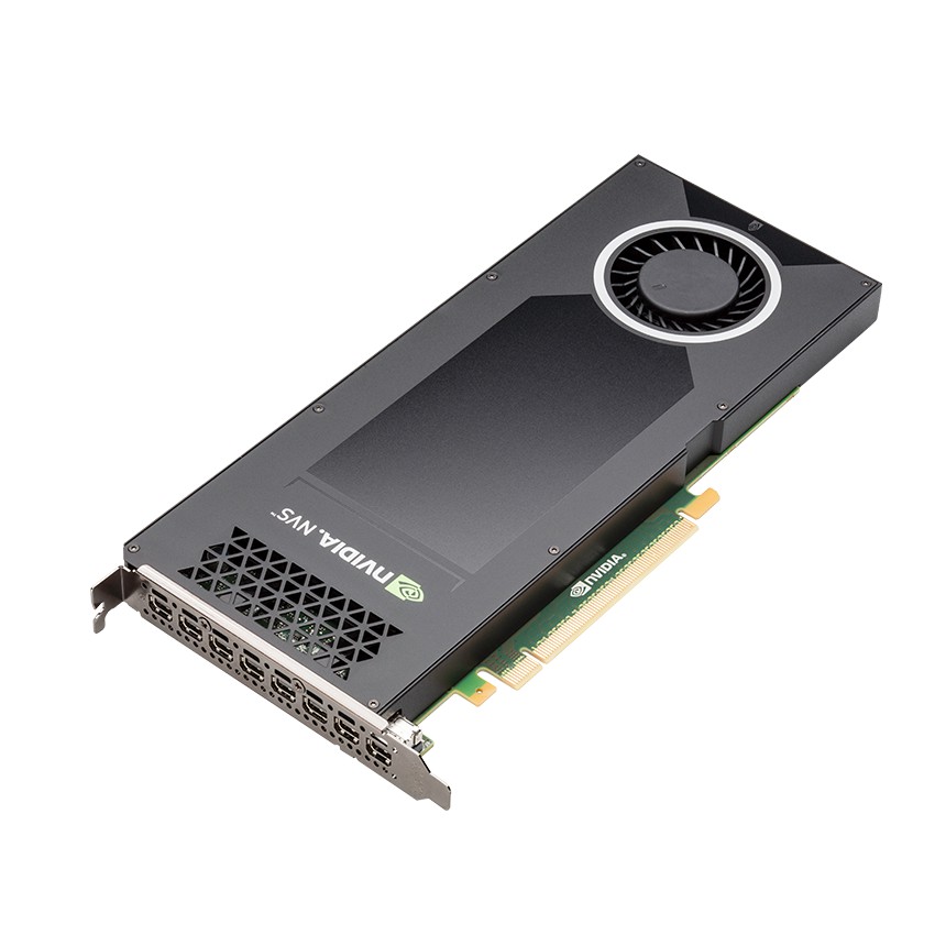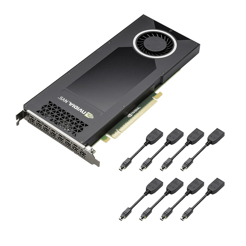 Ocho conectores mini-DisplayPort 1.2 son capaces de controlar 8 display UHD 4K a 30Hz, o 4 display UHD 4K a 60Hz. Además ofrece aplicaciones avanzadas como el multi-streaming y stream cloning que permiten una gestión eficiente del cable y máxima flexibilidad en el desarrollo de los displays, sobretodo en instalaciones complejas. Las tecnologías claves de NVIDIA como la corrección bezel, sincronización a lo largo de 8 displays, Warp & Blend y Mosaic, hacen la Cartelería Digital fácil.