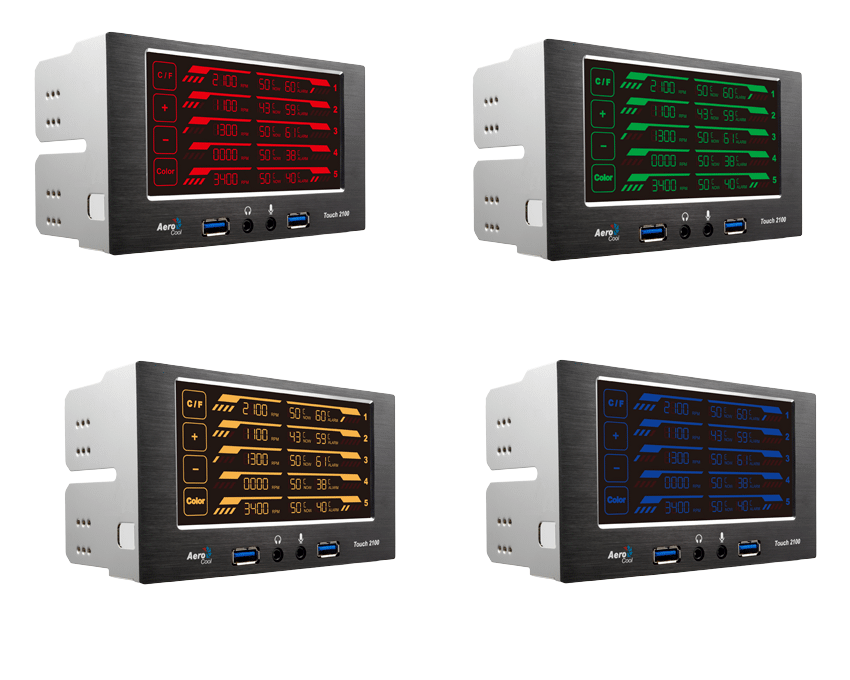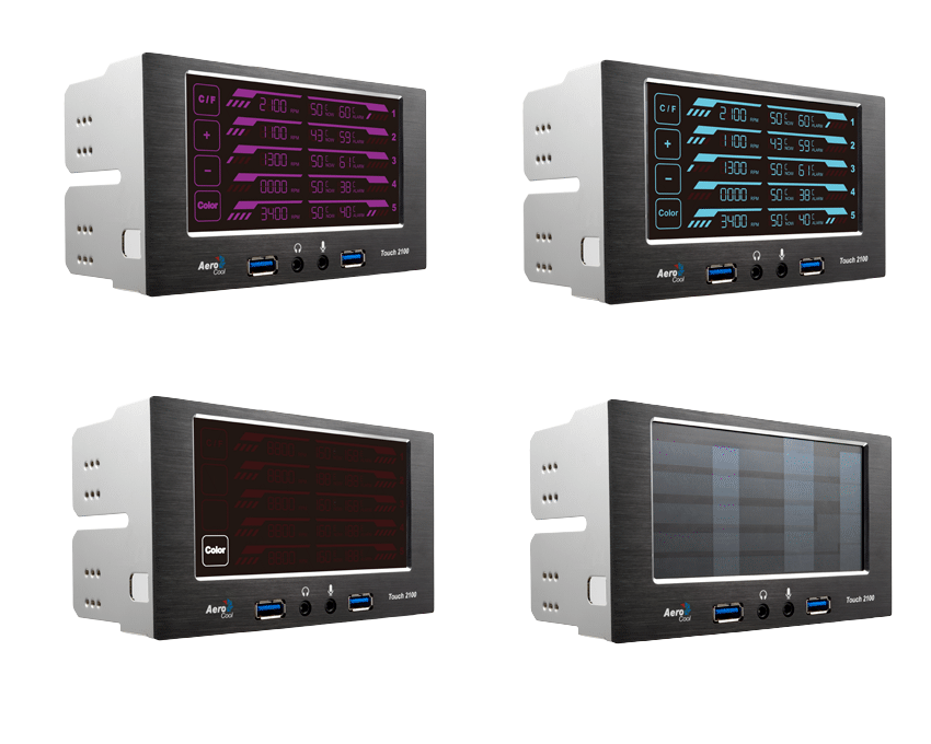 El nuevo Touch 2100 cuenta con una gran área de visión LCD y una interface muy fácil de usar con una selección de 7 colores de retroiluminacicón, junto con una actualización de puertos de USB 2.0 a USB 3.0.El controlador de ventiladores Touch 2100 es muy fácil de usar ya que soporta hasta 25w por canal, mientras que los antiguos solo son capaces de aguantar 6w por canal.