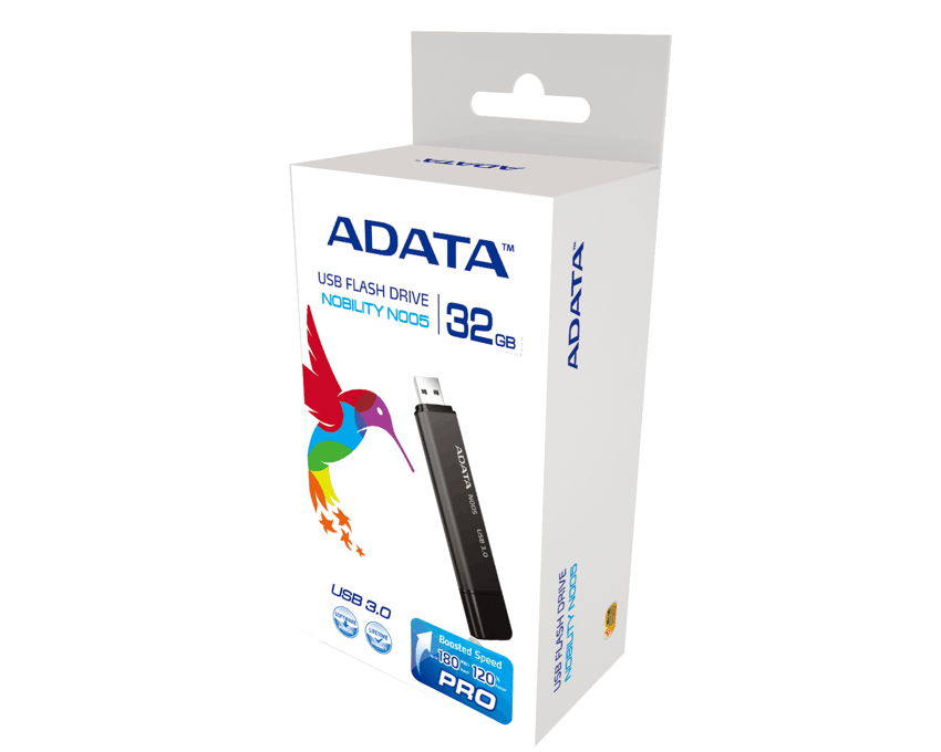 A-DATA 32GB N005 Pro, 32 GB, USB 3.0, cap, 180 MB/s, 50 MB/s, Gris A-DATA 32GB N005 Pro. Memoria: 32 GB, USB 3.0, cap, 180 MB/s, 50 MB/s. Color: Gris. Peso y dimensiones: 90 mm, 11.5 mm, 20.5 g, 20.5 mm. Special features: Aluminio