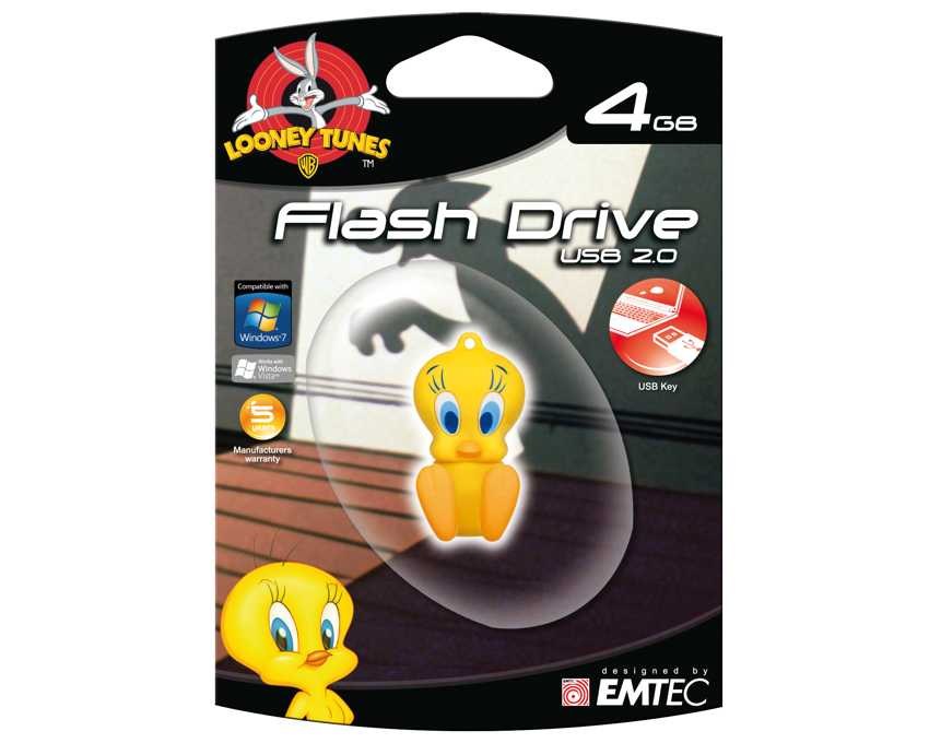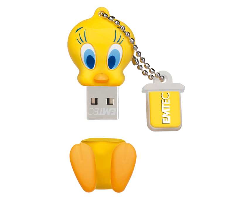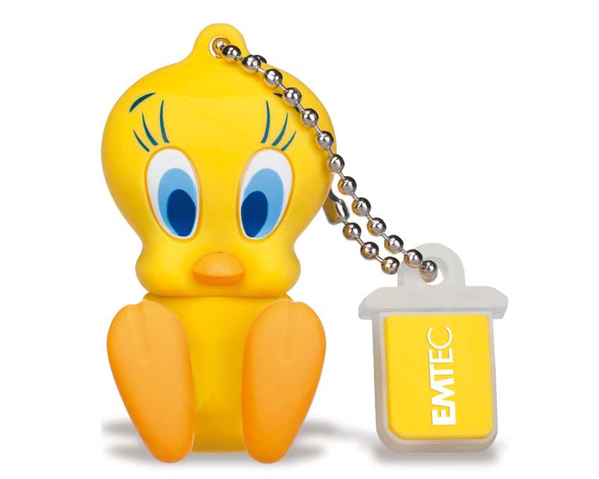 Características - Memoria USB Looney Tunes en 3D, una exclusividad de EMTEC! - Fabricadas en caucho siliconado - Tamaño mini (ningún personaje supera los 46mm) - Disponible en 4GB y 8GB - Con un extremo de goma suspendido a una cadenita : lleve su personaje favorito a todas partes. Sin riesgo de perder una parte de la memoria mientras esta se encuentra conectada: basta con unir ambas partes de la memoria con el extremo de goma.