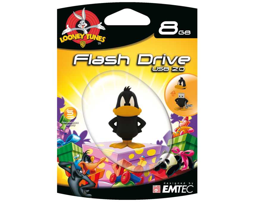 Memoria USB Looney Tunes en 3D, una exclusividad de EMTEC! - Fabricadas en caucho siliconado - Tamaño mini (ningún personaje supera los 46mm) - Con un extremo de goma suspendido de una cadena: lleve a todas partes su personaje preferido. Sin riesto de perder una parte de la memoria mientras esta se encuentra conectada: basta con unir ambas partes de la memoria con el extremo de goma.