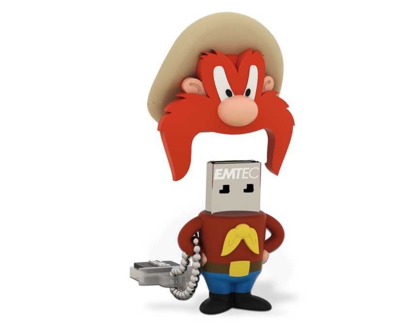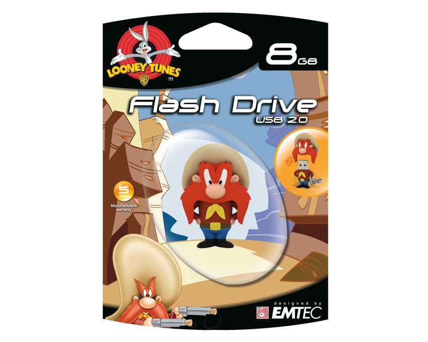 - Memoria USB Looney Tunes en 3D, una exclusividad de EMTEC! - Fabricadas en caucho siliconado - Con un extremo de goma suspendido de una cadena: lleve a todas partes su personaje preferido. Sin riesto de perder una parte de la memoria mientras esta se encuentra conectada: basta con unir ambas partes de la memoria con el extremo de goma. Capacidad 8GB Read speed Hasta 18MB/s Write speed Hasta 8MB/s Operating system Windows 98Se - 2000 - Me - XP - Vista - 7, Mac 8.6 - OS 9 - OS X, Linux Compatibility Compatibilidad Universal USB 2.0 Garantía 5 years Dimensiones del producto am Bigotes: 49 x 33 x 28mm Blister dimensions 160 x 115 x 50mm