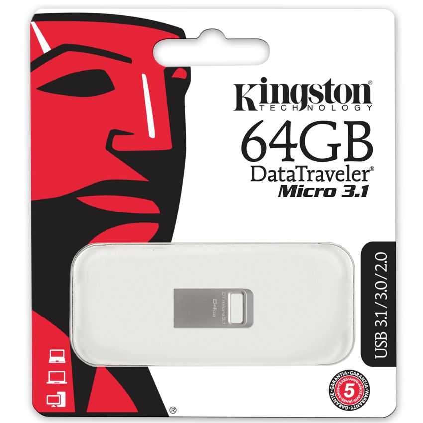 Descripción Pequeña y sin tapa, para llevar a dondequiera que vaya. DataTraveler® Micro 3.1 es una unidad Flash ultra pequeña y ligera, sin tapa, que proporciona velocidades USB 3.1 de hasta 100MB/s en lectura y 14MB/s en escritura. Es lo suficientemente pequeña para que pueda mantenerse conectada a su portátil mientras está en su bolsa, y tiene un agujero incorporado para el llavero. Guarde hasta 64GB de su música, películas y archivos favoritos y mucho más con esta unidad ""conectar y listo"", idónea para tabletas, ordenadores portátiles, sistemas de sonido de coche y televisores. - Diseño pequeño y sin tapa con agujero incorporado para llavero - Altas velocidades de USB 3.1 - Hasta 64GB de almacenamiento ampliado.