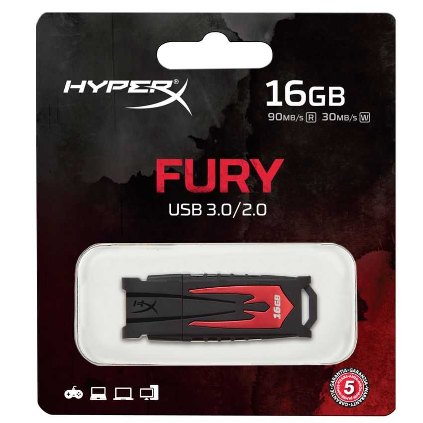 Descripción Tanto si eres un principiante como un pro, no podrás pasar sin la unidad USB HyperX® FURY, con su exterior llamativo y agresivo concebido en consonancia con las últimas tendencias de juego. Disponible en diferentes colores según su capacidad, su estilo intimidará a tus rivales y te hará destacar entre la multitud, además de ser compatible con los últimos ordenadores y consolas. Disponible en modelos de 16GB a 64GB de capacidad, la unidad HyperX FURY ofrece un elevado rendimiento para velocidades de transferencia de datos USB 3.0 (90MB por segundo de lectura y 30MB por segundo de escritura) a un precio asequible.