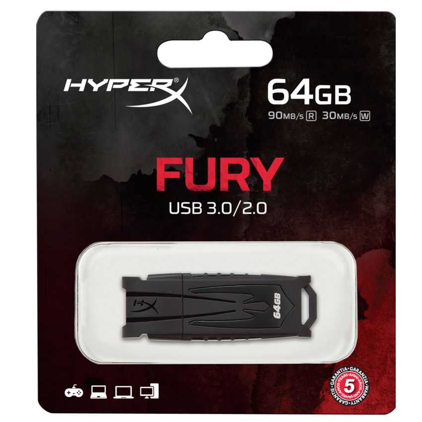 Descripción Tanto si eres un principiante como un pro, no podrás pasar sin la unidad USB HyperX® FURY, con su exterior llamativo y agresivo concebido en consonancia con las últimas tendencias de juego. Disponible en diferentes colores según su capacidad, su estilo intimidará a tus rivales y te hará destacar entre la multitud, además de ser compatible con los últimos ordenadores y consolas. Disponible en modelos de 16GB a 64GB de capacidad, la unidad HyperX FURY ofrece un elevado rendimiento para velocidades de transferencia de datos USB 3.0 (90MB por segundo de lectura y 30MB por segundo de escritura) a un precio asequible.