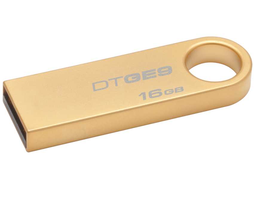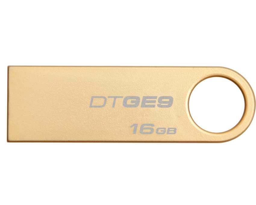 Kingston 16GB DataTraveler USB chapado en oro Memory Stick Flash Drive DTGE9/16GB DataTraveler ® de Kingston GE9 es un elegante, unidad flash ultra delgada con una carcasa chapada en oro de 24 quilates. Es pequeño, sin tapa y de tamaño de bolsillo para hacer almacenamiento portátil fácil