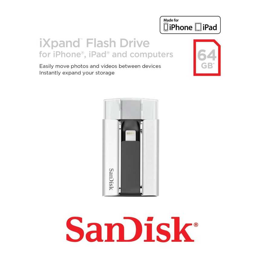 Descripción Sandisk 64GB iXpand. Capacidad: 64 GB, Tipo de interfaz: USB 2.0/Lightning, Sistemas operativos móviles soportados: iOS. Factor de forma: Tapa, Color del producto: Negro, Plata. Ancho: 3,68 cm, Profundidad: 1,18 cm, Altura: 6,42 cm. Tipo de embalaje: Ampolla
