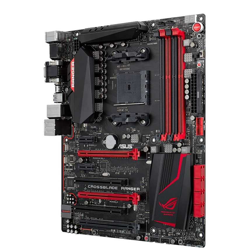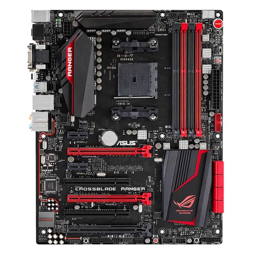 Descripción ASUS CROSSBLADE RANGER. tipos de memoria compatibles: DDR3-SDRAM, Tipo de ranuras de memoria: DIMM, Canales de memoria: Quad. Familia de procesador: AMD, Procesador compatible: AMD A, Socket de procesador: Socket FM2+. Interfaces de unidad de disco duro soportadas: SATA, Serial ATA II, Serial ATA III. Tipo de interfaz ethernet: Gigabit. Componente para: PC, Familia de componentes de tarjeta madre: AMD, Circuito integrado de tarjeta madre: A88X