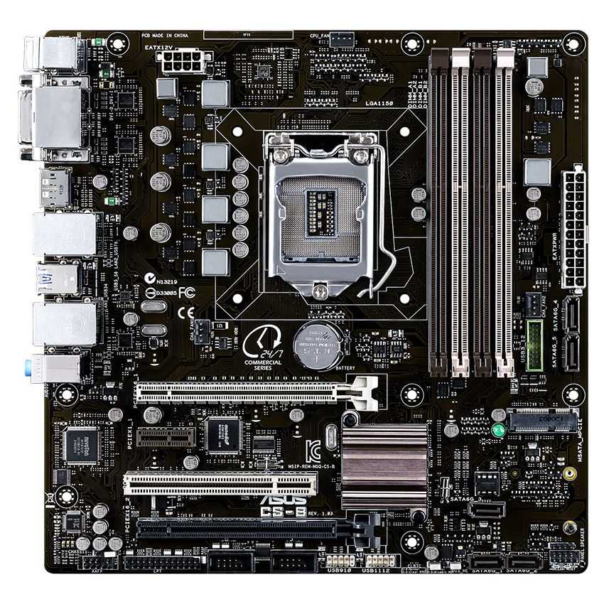 Descripción ASUS CS-B. tipos de memoria compatibles: DDR3-SDRAM, Tipo de ranuras de memoria: DIMM, Soporte de canales de memoria: Dual. Familia de procesador: Intel, Procesador compatible: Celeron, Core i3, Core i5, Core i7, Pentium, Socket de procesador: Socket H3(1150). Interfaces de unidad de disco duro soportadas: Serial ATA III. Controlador LAN: Intel I217LM, Realtek RTL8111G, Tipo de interfaz ethernet: Gigabit. Componente para: PC, Familia de componentes de tarjeta madre: Intel, Circuito integrado de tarjeta madre: Intel Q87