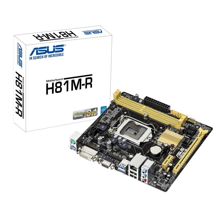 Descripción ASUS H81M-R. tipos de memoria compatibles: DDR3-SDRAM, Tipo de ranuras de memoria: DIMM, Canales de memoria: Dual. Familia de procesador: Intel, Procesador compatible: Celeron, Pentium, Core i3, Core i5, Core i7, Socket de procesador: Socket H3 (LGA 1150). Interfaces de unidad de disco duro soportadas: Serial ATA II, Serial ATA III. Controlador LAN: Realtek 8111GR. Componente para: PC, Familia de componentes de tarjeta madre: Intel, Circuito integrado de tarjeta madre: Intel H81