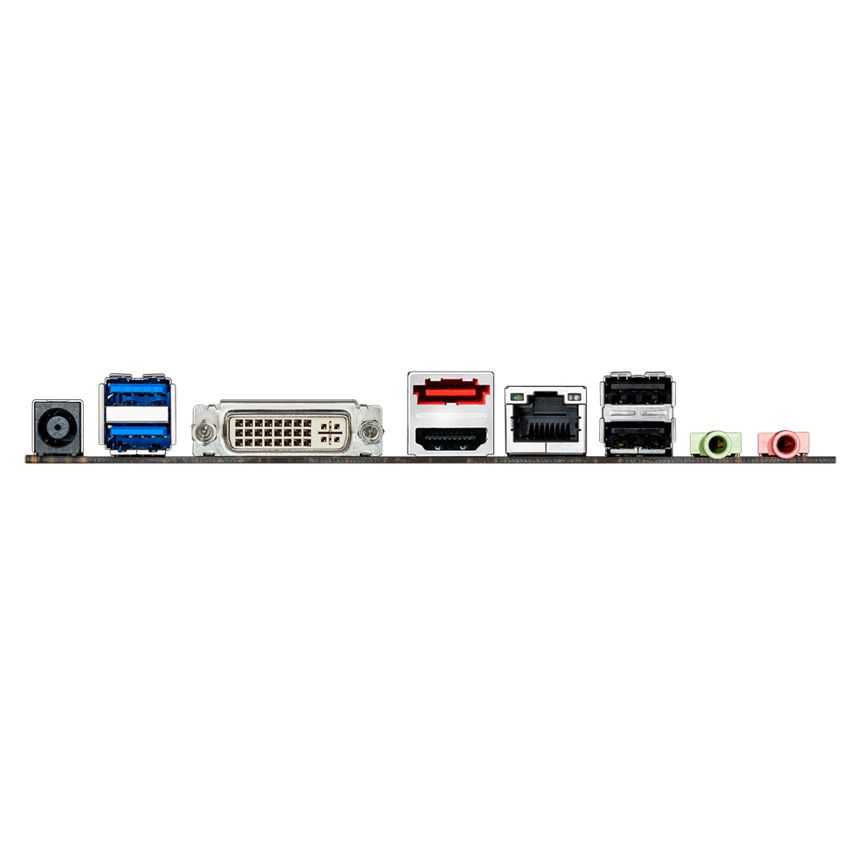 Especificaciones tipos de memoria compatibles: DDR3-SDRAM Tipo de ranuras de memoria: SO-DIMM Canales de memoria: Dual Velocidades de reloj de memoria soportadas: 1066, 1333, 1600 MHz Memoria interna máxima: 16 GB Ranuras de memoria: 2 Familia de procesador: Intel Procesador compatible: Celeron, Core i3, Core i5, Core i7, Pentium Socket de procesador: Socket H3 (LGA 1150) USB 2.0, conectores: 3 Interfaces de unidad de disco duro soportadas: Serial ATA II, Serial ATA III Cantidad de puertos mSATA: 1 Conector de ventilador CPU: Si Número de conectores COM: 1 Conector de instrusión a chasis: Si Número de conectores a ventilador de chasis: 1 Conector de audio en panel frontal: Si Conector TPM: Si Número de conectores SATA II: 2 Número de conectores SATA III: 2 Cantidad de puertos USB 2.0: 2 Cantidad de puertos USB 3.0: 2 Ethernet LAN (RJ-45) cantidad de puertos: 1 Cantidad de puertos eSATA: 1 Número de puertos HDMI: 1 Cantidad de puertos DVI-I: 1 Ethernet: Si Controlador LAN: Realtek 8111G Tipo de interfaz ethernet: Gigabit Componente para: PC Familia de componentes de tarjeta madre: Intel Circuito integrado de tarjeta madre: Intel H81 Tarjeta madre, factor de forma: Mini iTX Canales de salida de audio: 7.1 Sistema de audio: Realtek ALC887-VD Sistema operativo Windows soportado: Si Soporte para proceso paralelo: No Máxima resolución: 4096 x 2160 Pixeles Número de pantallas soportadas: 2 Entradas Mini PCI Express: 1 Tipos de BIOS: AMI BIOS, tamaño de memoria: 64 MB Versión ACPI: 2.0a Jumper Clear CMOS: Si Ancho: 17 cm Profundidad: 17 cm Cables incluidos: SATA