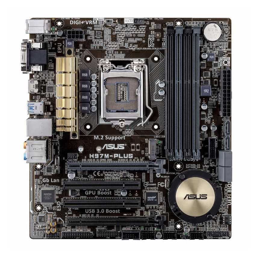 Especificaciones tipos de memoria compatibles: DDR3-SDRAM Tipo de ranuras de memoria: DIMM Memoria interna: 32 GB Canales de memoria: Dual No ECC: Si Velocidades de reloj de memoria soportadas: 1333, 1600 MHz Memoria sin buffer: Si Ranuras de memoria: 4 Familia de procesador: Intel Procesador compatible: Celeron, Core i3, Core i5, Core i7, Pentium Socket de procesador: Socket H3 (LGA 1150) USB 2.0, conectores: 3 Conectores USB 3.0: 1 Interfaces de unidad de disco duro soportadas: Serial ATA III Número de conectores SATA: 6 S/PDIF, conector de salida: Si Conector de ventilador CPU: Si Conector de potencia ATX (24 pines): Si Número de conectores de poder EATX: 1 Número de conectores a ventilador de chasis: 2 Conector de audio en panel frontal: Si Conector TPM: Si Número de conectores SATA III: 6 Conector de energía EPS (8-pin): Si Cantidad de puertos USB 2.0: 2 Cantidad de puertos USB 3.0: 4 Ethernet LAN (RJ-45) cantidad de puertos: 1 Puerto de ratón PS/2: 1 Salidas para auriculares: 1 Micrófono, jack de entrada: Si Cantidad de puertos VGA (D-Sub): 1 Cantidad de puertos DVI-D: 1 Número de puertos HDMI: 1 Ethernet: Si Tipo de interfaz ethernet: Gigabit Componente para: PC Familia de componentes de tarjeta madre: Intel Circuito integrado de tarjeta madre: Intel H97 Tarjeta madre, factor de forma: Micro ATX Canales de salida de audio: 7.1 Niveles RAID: 0, 1, 5, 10 Sistema de audio: HDA Soporte para proceso paralelo: Quad-GPU CrossFireX PCI Express x16 Gen (2.x) ranuras: 1 PCI Express x16 Gen (3.x) ranuras: 1 Ranuras PCI: 2 Tipos de BIOS: UEFI AMI BIOS, tamaño de memoria: 64 MB Versión ACPI: 5.0 Jumper Clear CMOS: Si Ancho: 24,4 cm Profundidad: 22,4 cm
