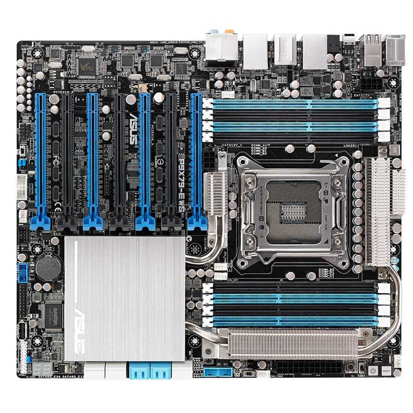 Descripción ASUS P9X79-E WS. tipos de memoria compatibles: DDR3-SDRAM, Tipo de ranuras de memoria: DIMM, Memoria interna: 64 GB. Familia de procesador: Intel, Procesador compatible: Core i7, Xeon, Socket de procesador: Socket R (LGA 2011). Interfaces de unidad de disco duro soportadas: SATA. Controlador LAN: Intel I210, Tipo de interfaz ethernet: Gigabit. Componente para: PC, Familia de componentes de tarjeta madre: Intel, Circuito integrado de tarjeta madre: Intel X79