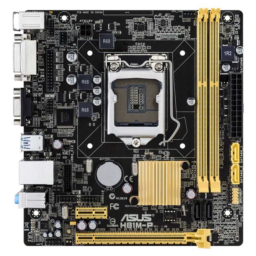 Descripción ASUS H81M-P. tipos de memoria compatibles: DDR3-SDRAM, Tipo de ranuras de memoria: DIMM, Canales de memoria: Dual. Familia de procesador: Intel, Procesador compatible: Celeron, Core i3, Core i5, Core i7, Pentium, Socket de procesador: Socket H3 (LGA 1150). Interfaces de unidad de disco duro soportadas: Serial ATA II, Serial ATA III. Controlador LAN: Realtek 8111GR, Tipo de interfaz ethernet: Gigabit. Familia de componentes de tarjeta madre: Intel, Circuito integrado de tarjeta madre: Intel H81, Tarjeta madre, factor de forma: Micro ATX