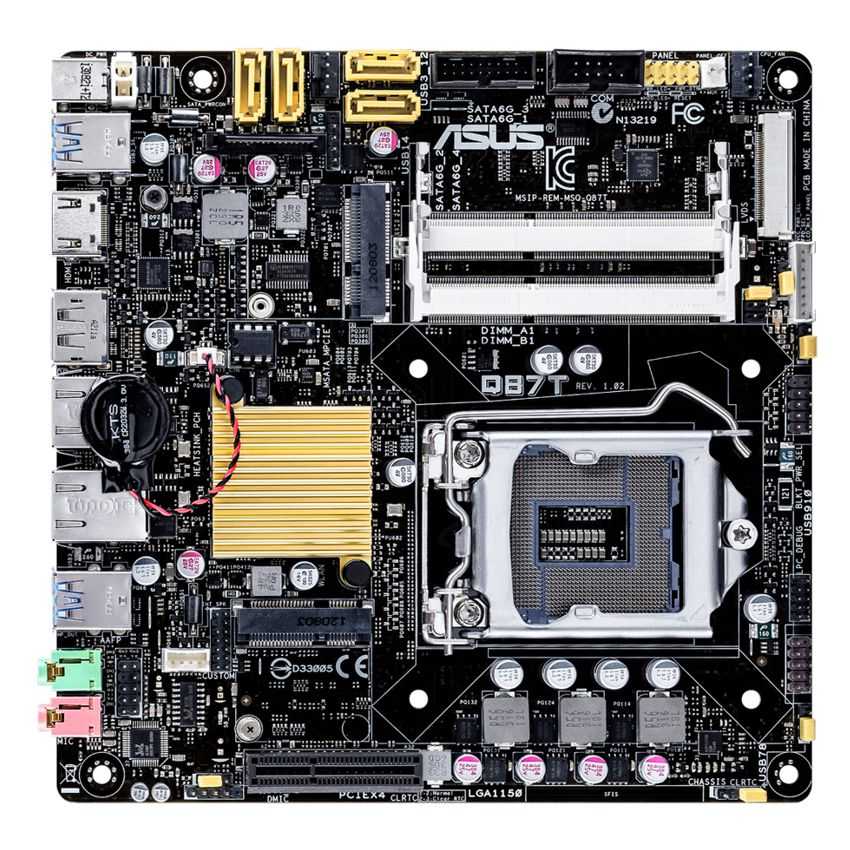 Descripción ASUS Q87T. tipos de memoria compatibles: DDR3-SDRAM, Tipo de ranuras de memoria: SO-DIMM, Soporte de canales de memoria: Dual. Familia de procesador: Intel, Procesador compatible: Celeron, Core i3, Core i5, Core i7, Pentium, Socket de procesador: Socket H3(1150). Interfaces de unidad de disco duro soportadas: Serial ATA III. Controlador LAN: Intel I217LM, Realtek RTL8111G, Tipo de interfaz ethernet: Gigabit. Componente para: Nettop, Familia de componentes de tarjeta madre: Intel, Circuito integrado de tarjeta madre: Intel Q87