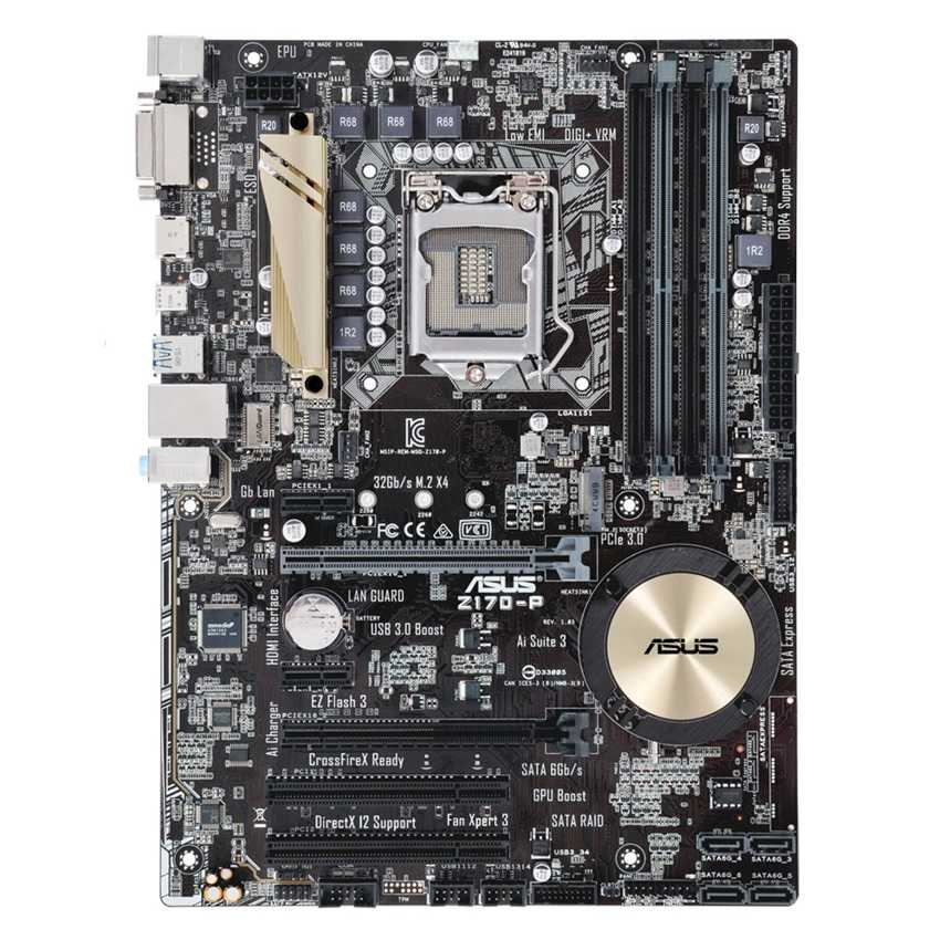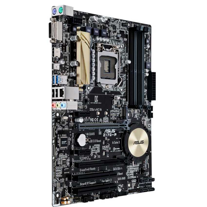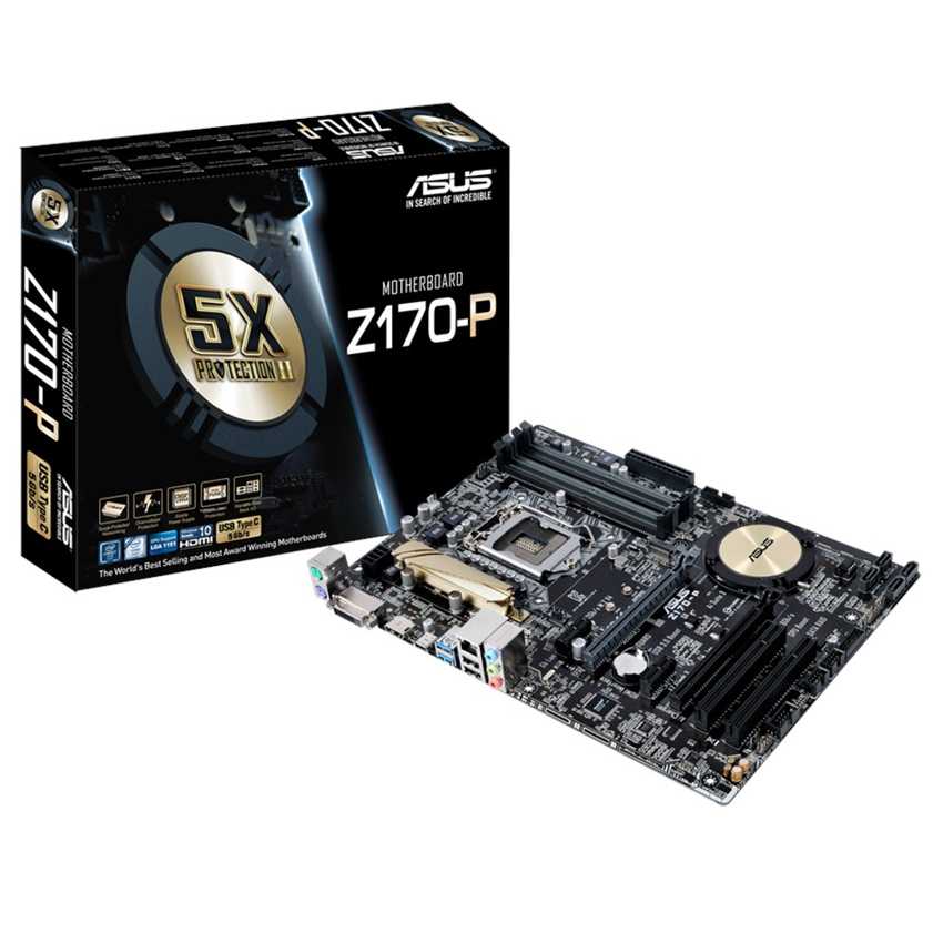 Descripción ASUS Z170-P. tipos de memoria compatibles: DDR4-SDRAM, Tipo de ranuras de memoria: DIMM, Canales de memoria: Dual. Familia de procesador: Intel, Procesador compatible: Celeron, Core i3, Core i5, Core i7, Pentium, Socket de procesador: LGA1151. Interfaces de unidad de disco duro soportadas: Serial ATA III. Controlador LAN: Realtek 8111GR, Tipo de interfaz ethernet: Gigabit. Componente para: PC, Familia de componentes de tarjeta madre: Intel, Circuito integrado de tarjeta madre: Intel Z170