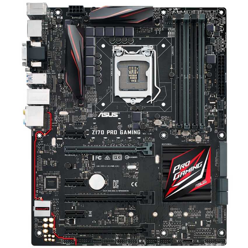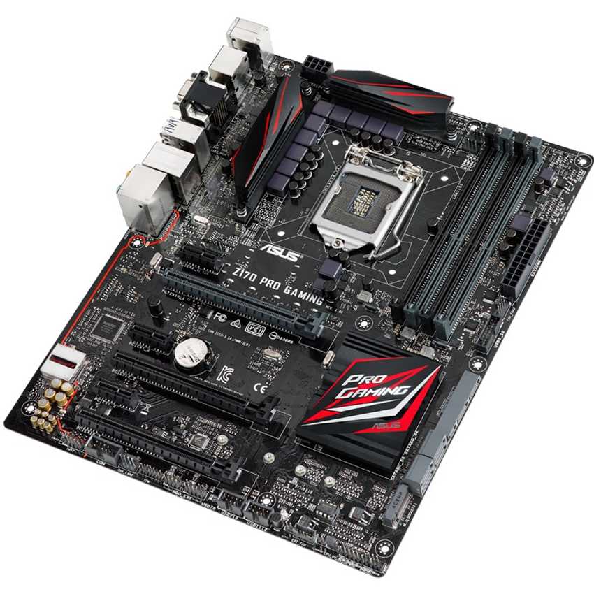 Descripción ASUS Z170 PRO GAMING. tipos de memoria compatibles: DDR4-SDRAM, Tipo de ranuras de memoria: DIMM, Canales de memoria: Dual. Familia de procesador: Intel, Procesador compatible: Celeron, Core i3, Core i5, Core i7, Pentium, Socket de procesador: LGA1151. Interfaces de unidad de disco duro soportadas: SATA, Serial ATA III. Tipo de interfaz ethernet: Gigabit. Componente para: PC, Familia de componentes de tarjeta madre: Intel, Circuito integrado de tarjeta madre: Intel Z170