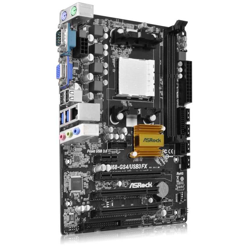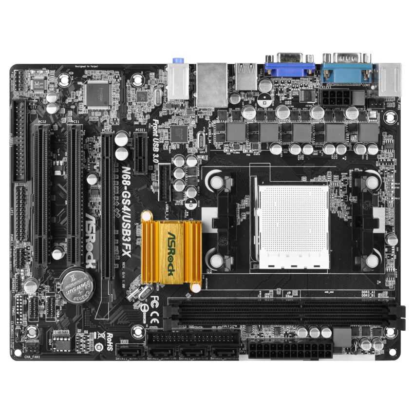 Descripción Asrock N68-GS4 FX. tipos de memoria compatibles: DDR3-SDRAM, Tipo de ranuras de memoria: DIMM, Canales de memoria: Dual. Familia de procesador: AMD, Socket de procesador: Socket AM3+, Procesador FSB, soporte: 1000 MHz. Interfaces de unidad de disco duro soportadas: Serial ATA II. Controlador LAN: Atheros AR8151, Tipo de interfaz ethernet: Gigabit. Componente para: PC, Familia de componentes de tarjeta madre: NVIDIA, Circuito integrado de tarjeta madre: NVIDIA nForce 630a