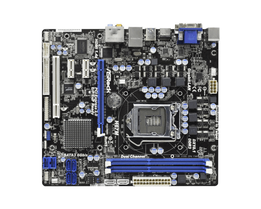 H67M, LGA1155, Intel H67, 2 x DDR3 1333MHz, 1 x PCIE2.0 x16, Intel HD Graphics 2000/3000, 2 x SATA3, 2 x USB 3.0, mATX - 100% Todo diseño de Capacitor Sólido. - Admite CPU Intel® K-Series. - Admite DDR3 1333 de canal dual. - Intel® HD Graphics 2000/3000 y las nuevas características de Visual, DX10.1, Pixel Shader 4.1. - Admite la función 3D estereoscópica Blu-ray con HDMI 1.4a. - Múltiples opciones de salida VGA: D-Sub, DVI-D y HDMI. - 2 x puertos USB 3.0, 2 x Conectores SATA3. - Apoya ASRock Extreme Tuning Utility (AXTU), XFast USB, UEFI, Instant Boot, Instant Flash, LED de ahorro de energía, APP Charger, SmartView. - Opción de refrigeración combinada (C.C.O.). - 7.1 CH HD Audio con Protección de Contenido (Códec de audio Realtek ALC892), Compatible con audio Blu-ray de alta calidad.