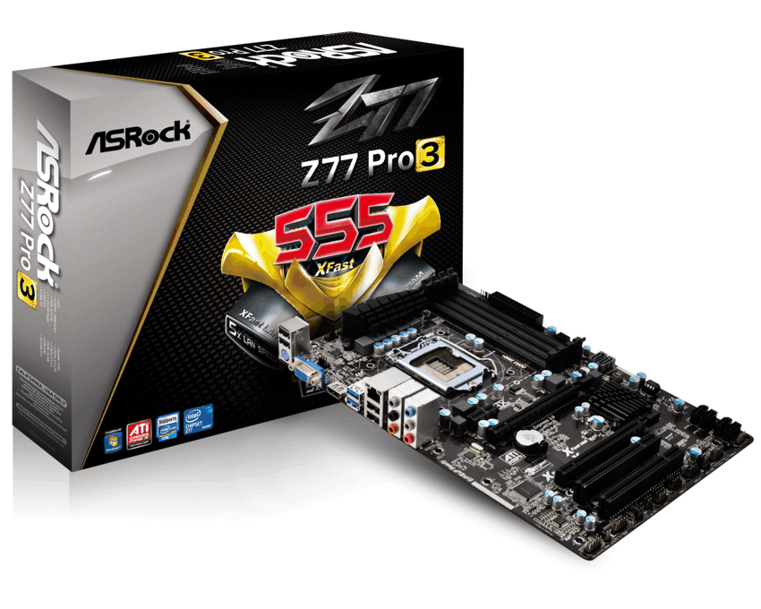 Z77 PRO3, 3nd & 2nd gen. Intel LGA 1155, Intel Z77, 4 x DDR3, 2 x SATA 6Gbps/4 x SATA 3Gbps, 7.1ch. HDA, Gigabit Lan, 1 x PCIe 3.0 x16, 1 x PCIe 2.0 x16, 1 x PCIe 2.0 x1, 2 x PCI, 10 x USB2.0/4 x USB3.0, ATX - Diseño del 100% capacitadores sólidos - Digi Power Design - Soporta DDR3 2800+(OC) Dual Channel - 1 x ranura PCIe 3.0 x16, Soporta AMD Quad CrossFireX? , CrossFireX? - PCIE Gigabit LAN - Soporta Intel® HD Graphics con Built-in Visuals - Dual-VGA Output Options : D-Sub, HDMI - Opción C.C.O (Combo Cooler Option) - Audio 7.1 CH HD con protección de contenido (Realtek ALC892 Audio Codec), Soporta THX TruStudio? - Soporta ASRock XFast RAM, XFast LAN, XFast USB, OMG, Internet Flash, On/Off Play, Sistema Navegador UEFI - Soporta Intel® Smart Connect, Intel® Rapid Start, Lucid Virtu Universal MVP - Bundle Gratis : Prueba CyberLink MediaEspresso 6.5, Suite Multimedia ASRock MAGIX Este modelo puede no venderse en todo el mundo. Por favor contacte con su distribuidor local para conocer la disponibilidad de este modelo en su región