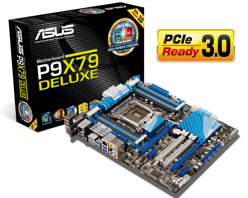 Asus P9X79 DELUXE, 64 GB, quad, DDR3-SDRAM, 1066, 1333, 1600, 1866, 2133, 2400 MHz, Intel, LGA2011 Asus P9X79 DELUXE. Memoria: 64 GB, quad, DDR3-SDRAM, 1066, 1333, 1600, 1866, 2133, 2400 MHz. Procesador: Intel, LGA2011, Core i7. Audio: 7.1, Realtek ALC898. Ranuras de expansión: 3.0. Peso y dimensiones: 244 mm, 305 mm. Reguladores del almacenaje: 0, 1, 5, 10. Red: Realtek 8111E / Intel 82579V, 10/100/1000 Mbit/sec, 802.11b, 802.11g, 802.11n, Gigabit, 3.0+HS. BIOS: UEFI, 2.0a, 64 MB