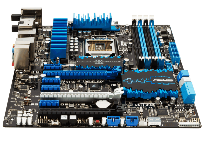 P8Z77-V DELUXE, LGA 1155, Intel Z77, 4 x DDR3 2600+MHz, Intel HD Graphics, 3 x PCI Express (2-Way/Quad-GPU SLI, 2-Way/3-Way/Quad-GPU CrossFireX, LucidLogix Virtu MVP), 4 x SATA 3.0Gb/s, 4 x SATA 6.0Gb/s, Dual Gigabit LAN, Wi-Fi, Bluetooth V4.0/V3.0+HS, UEFI BIOS, ATX Placa base Z77 con un rendimiento mejorado, control independiente de los ventiladores y control remoto inalámbrico.