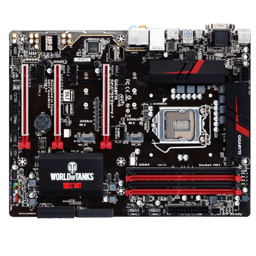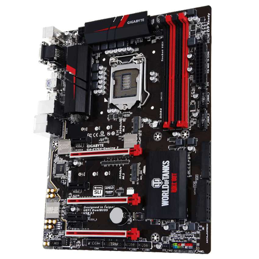 Descripción Gigabyte GA-Z170X-Gaming 3-EU. tipos de memoria compatibles: DDR4-SDRAM, Tipo de ranuras de memoria: DIMM, Velocidades de reloj de memoria soportadas: 2133,2400,2666,2800,3000,3200,3300,3333,3400,3466 MHz. Familia de procesador: Intel, Procesador compatible: Celeron, Core i3, Core i5, Core i7, Pentium, Socket de procesador: LGA1151. Interfaces de unidad de disco duro soportadas: M.2, Serial ATA III. Componente para: PC, Familia de componentes de tarjeta madre: Intel, Circuito integrado de tarjeta madre: Intel Z170. Soporte para proceso paralelo: 2-Way CrossFireX, 2-Way SLI, 3-Way CrossFireX